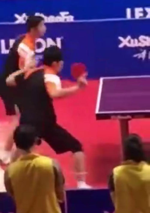 周杰伦搭档马龙打乒乓球
