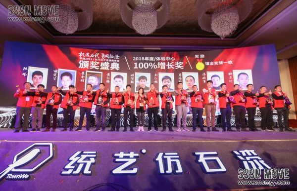 本次招商会规模宏大,为吸引经销商热情加入统艺大家庭,本次招商会做了许多精美的布置,木作工艺配上灯光渲染、合影区的背景板的特色搭建,搭配精心制作的PVC、泡沫字logo制作,吸引了大批经销商来宾前往台上合影,入场通道更是有高科技人影互动体验,现场招商气氛火爆。