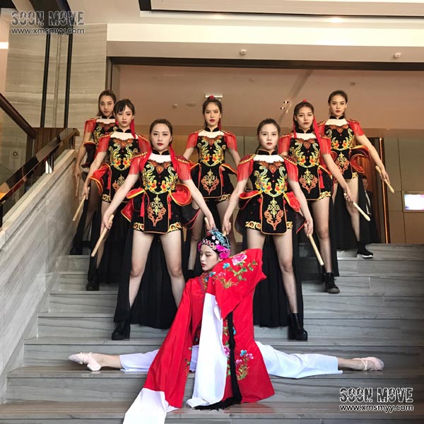 激动人心的鼓声、炫丽靓丽的服饰、潇洒大气的舞姿,完美的大红龙鼓舞适用于开场。气势恢弘的鼓,震慑耳朵的节奏魅力,在京剧戏子装扮的舞者舞姿的衬托下,尤见力与韵,刚与柔的相互结合,不论是鼓点的力量感、空气感还是音色外的肢体语言,都尽情展现了中华民族魅力超凡的传统京韵超感官享受,一开场便震慑全场。