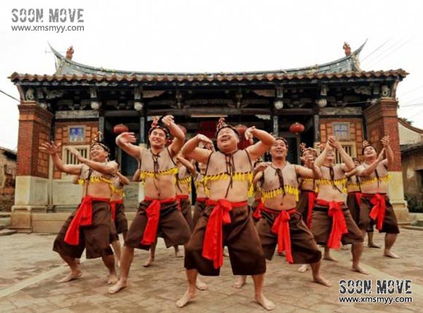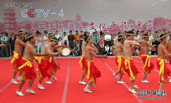 拍胸舞起源于“东亚文化之都——泉州”,是闽南地区传统民间舞蹈之一。有“东方迪斯科”之称的拍胸舞,在古代时期就开始广泛流传。舞者都为男性,他们头戴草圈、赤足,裸着上身,双脚半蹲,双手击打胸膛、两肋、大腿,时而舒缓时而激昂,体现了远古闽越舞蹈粗犷、古朴的民族遗风。跳跃、扭腰、跪蹲、抬腿、踢腿、带着热烈的情绪,边歌边舞,一招一式都能让人感受到无限的力量。拍胸舞适用于民间传统庆典活动,大型舞台晚会演出等,欢迎预定。