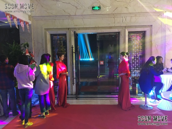 八点四十分,主持人引导来宾转场,移步室外,一起寻找圣诞老人与圣诞老婆婆的踪影。追光灯四处寻觅,随着三、二、一倒数,灯光最终停留在对面建筑楼梯的高层电梯上,电梯灯光骤亮,来宾惊呼,这正是恭候多时的圣诞老人!电梯缓缓下落,打开门那一瞬间,圣诞老人,圣诞老婆婆以及两个麋鹿带着他们的礼物走向在场的来宾。观众们一拥而上,激动的去领取属于自己的那一份“幸福礼物”。伴随着轻快的节奏,所有人一起度过了一个温馨难忘的圣诞之夜。